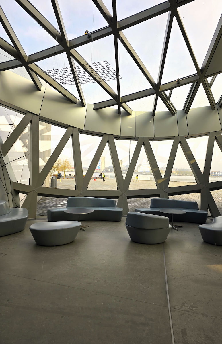 Architectural brilliance. Musikkens Hus immediately captured my attention with its striking contemporary design by the internationally acclaimed firm Coop Himmelb(l)au. Located on Aalborg’s waterfront along the Limfjord, this magnificent structure features clean lines, innovative shapes, and a harmonious blend of glass and steel that makes it stand out in the cityscape.