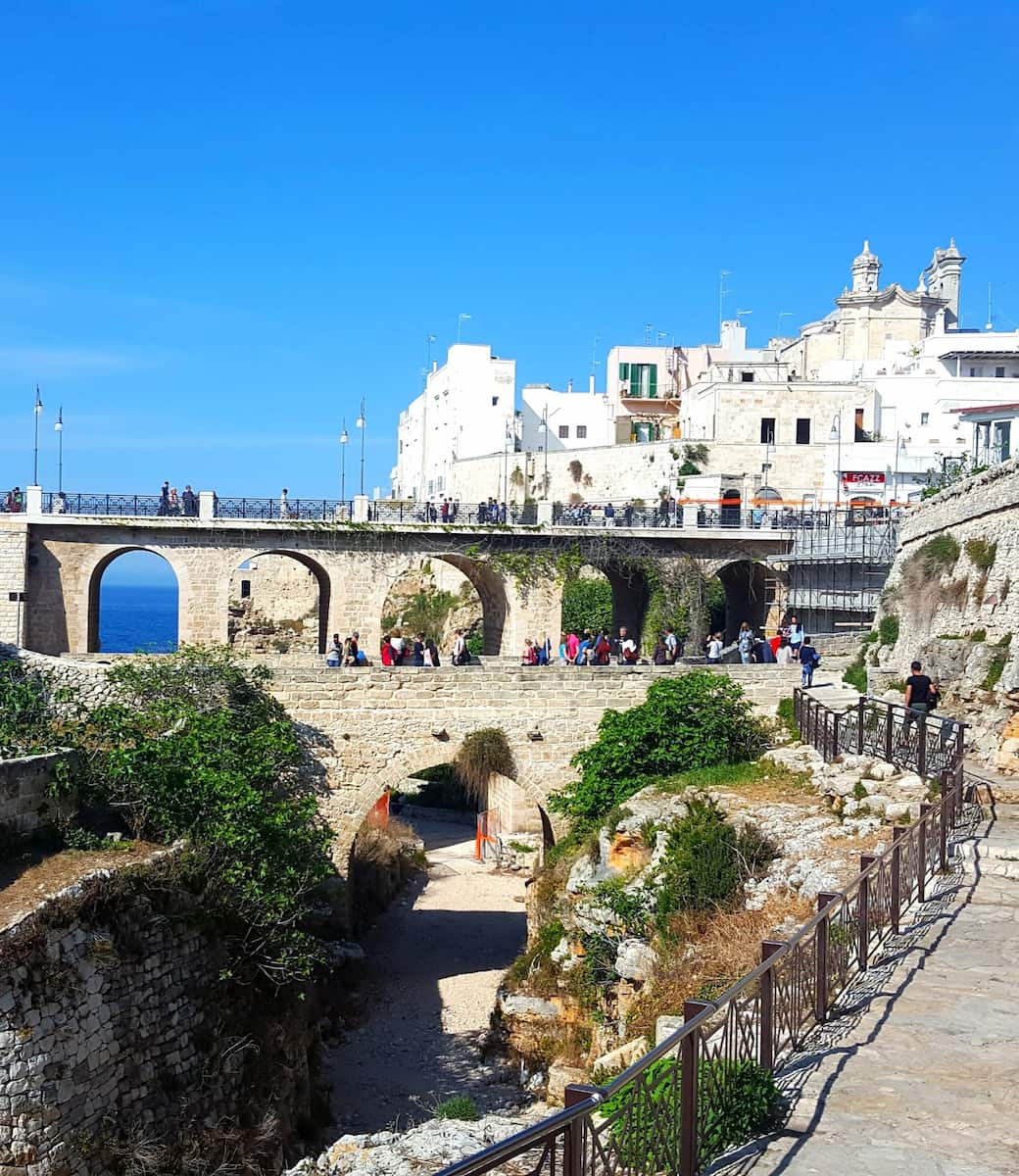 Beach Experience. After exploring the old town, I headed to Lama Monachile beach (also called Cala Porto), the iconic pebble beach nestled between towering cliffs. Despite visiting in April, I found several locals brave enough to dive from the surrounding rocks – a tradition that continues year-round. The beach is small but stunning, with the ancient Roman bridge of Lama Monachile creating a perfect frame for photos.