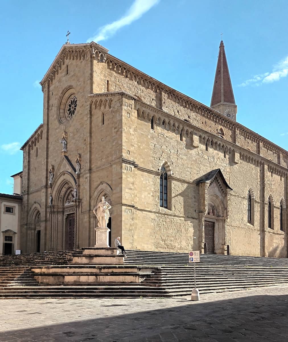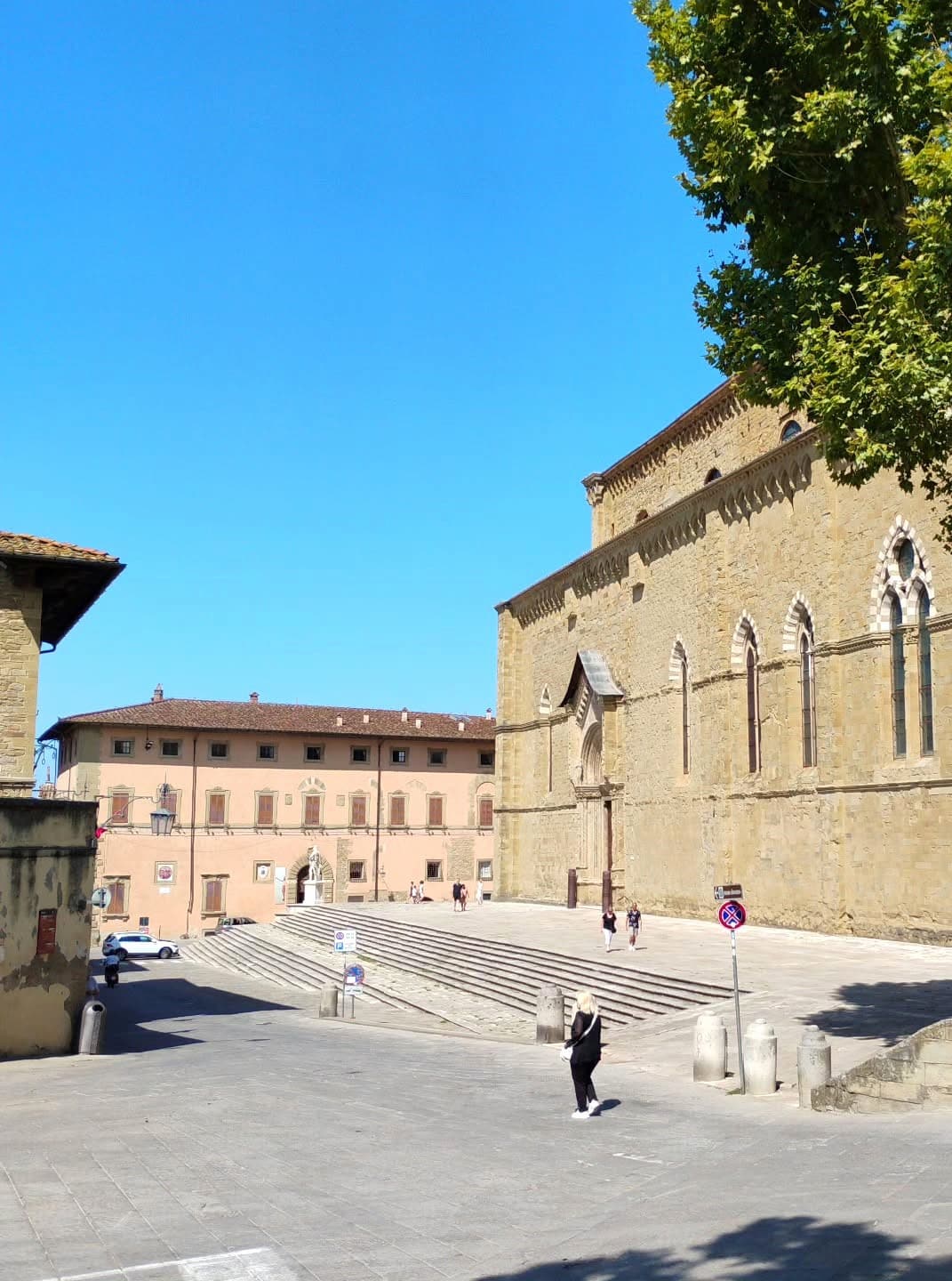 Duomo discovery. Perched atop Arezzo’s highest hill, the Cathedral (Cattedrale di Santi Pietro e Donato) immediately impressed me with its imposing Gothic façade and magnificent stained glass windows by Guillaume de Marcillat. Dating back to the 13th century, this cathedral offers breathtaking views over the Tuscan countryside from its elevated position.