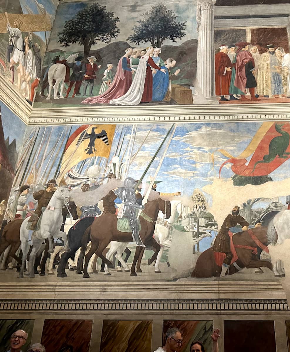 Emotional impact. Standing before these frescoes, I felt transported through time. The “Dream of Constantine” scene with its innovative night lighting particularly moved me – the way Piero captured the ethereal glow of the angel’s appearance in the darkness feels remarkably modern despite being painted over 550 years ago.