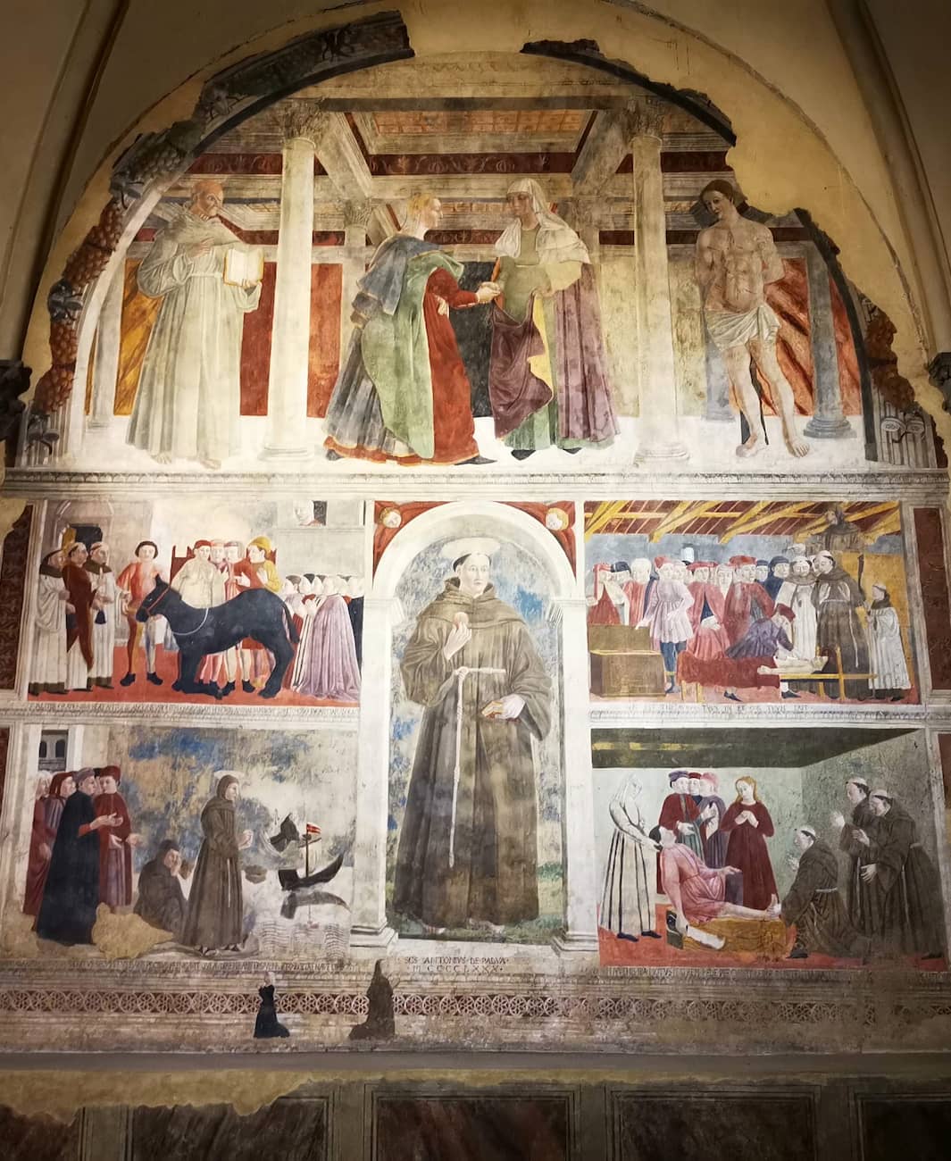 Restoration marvel. The frescoes underwent meticulous restoration in the 1990s, revealing colors and details hidden for centuries. The church itself dates to the late 13th century and features a simple, elegant façade typical of Franciscan architecture – a striking contrast to the artistic complexity within.