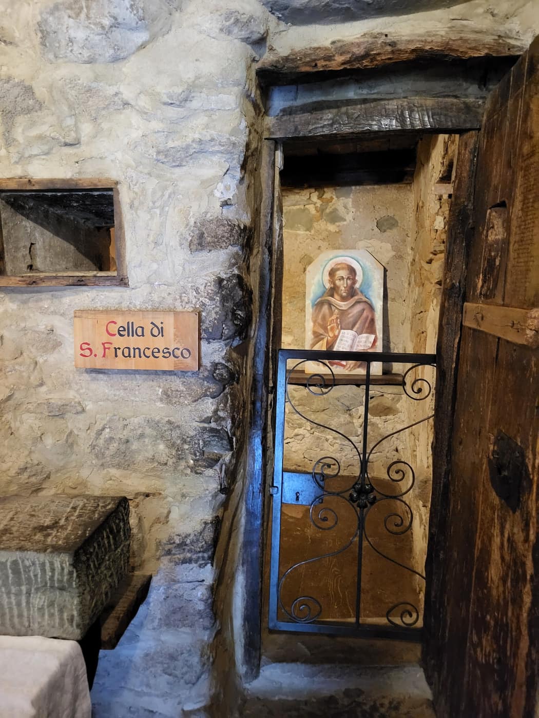 Architectural harmony. The complex is built “a gradoni” (in tiers) on both sides of the valley, with monks’ cells and communal areas blending seamlessly into the rocky landscape. The original cell where St. Francis lived has been preserved, offering a touching glimpse into the saint’s austere lifestyle.