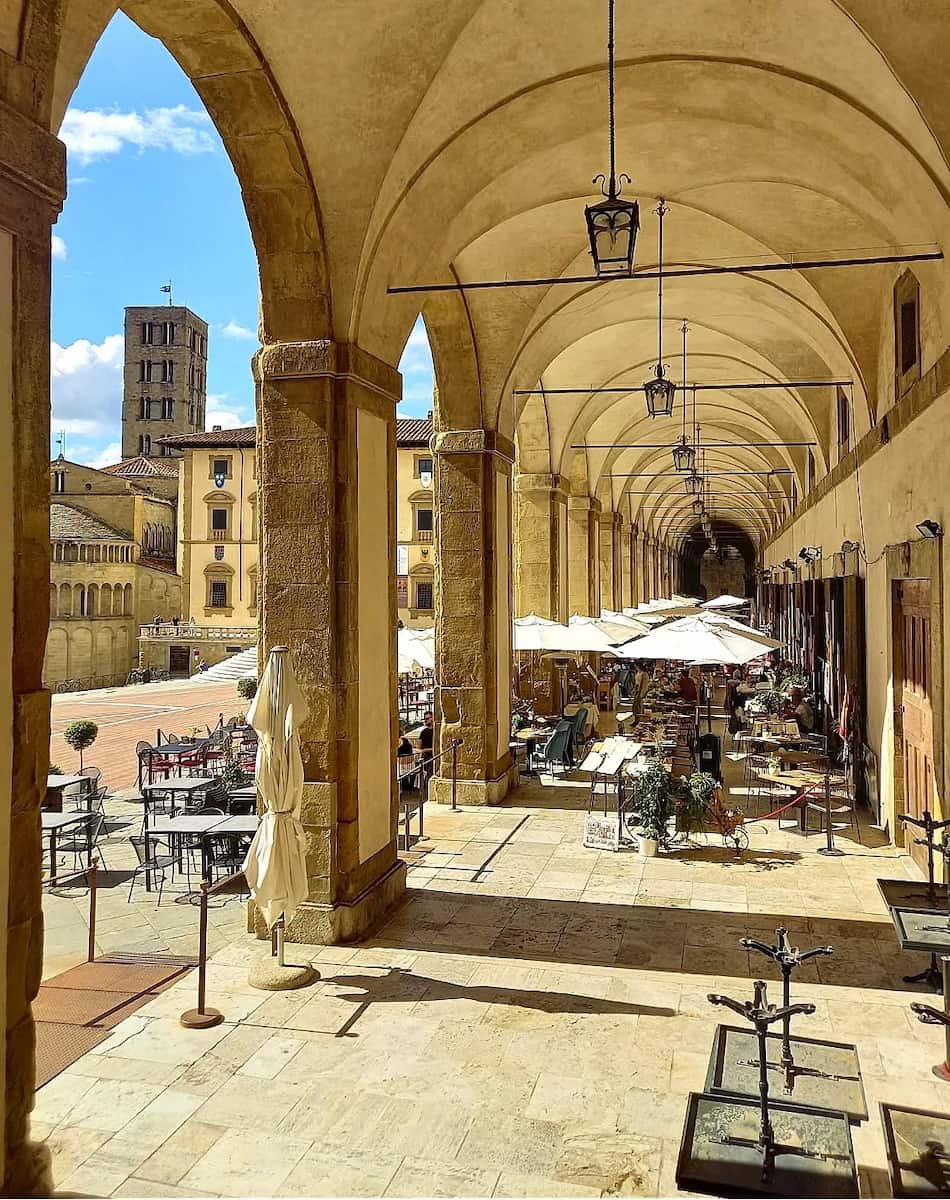 Piazza Grande. This magnificent sloping square is Arezzo’s heart and completely free to enjoy. I spent hours here admiring the architectural mix spanning different periods – from medieval stone houses to Renaissance loggias. The square transforms throughout the day as light shifts across its distinctive trapezoid shape.