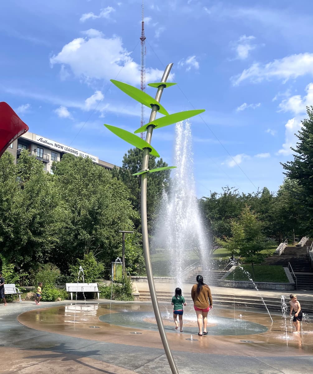 You can enjoy the Fountain of Rings water show, which performs four times daily at 12:30 PM, 3:30 PM, 6:30 PM, and 9:00 PM. The park also hosts free summer concerts, features Olympic monuments, and offers walking paths with public art installations.
