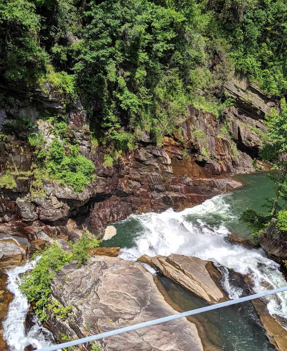 Dramatic landscape. Tallulah Gorge State Park showcases one of the most spectacular canyons in the eastern United States, where the Tallulah River cuts through the Appalachian Mountains creating a 1,000-foot deep gorge with six cascading waterfalls. Located about 100 miles northeast of Atlanta, this natural wonder offers a complete contrast to city life. During my visits across different seasons, I’ve been consistently awed by the raw power of the rushing water and the sheer scale of the rock walls rising from the river.