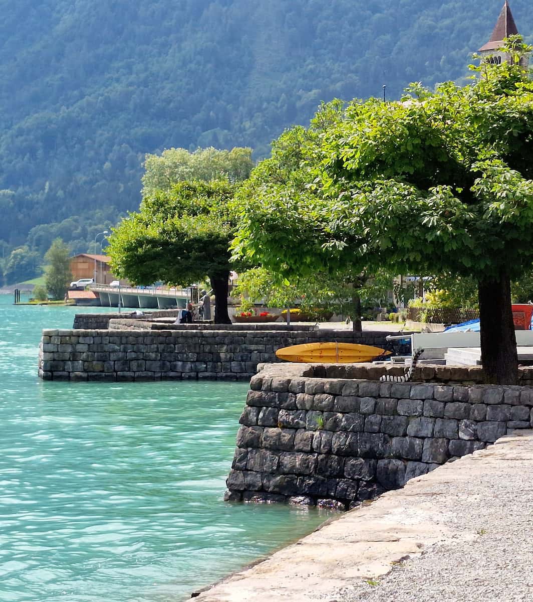 Swimming spots. Despite the lake’s glacial origins, I was pleasantly surprised to find Lake Brienz warm enough for swimming during my summer visit. Along the promenade, I discovered several access points with stairs leading directly into the crystal-clear water. Taking a refreshing dip with the panorama of mountains surrounding me was an unforgettable experience.