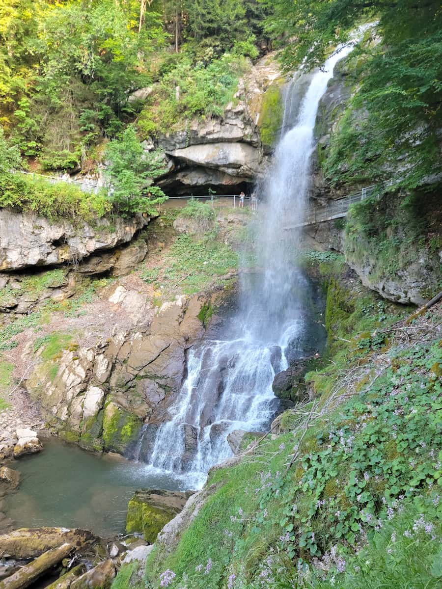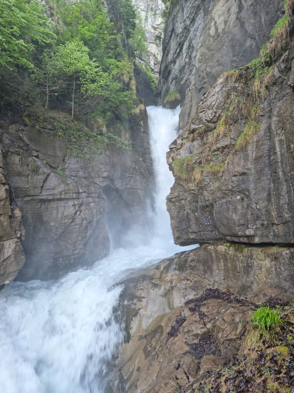 Behind the falls experience. One of my favorite parts of visiting Giessbach was walking the trail that actually takes you behind one of the waterfall sections. The sensation of standing safely behind the roaring curtain of water while gazing out at the stunning panorama of Lake Brienz is absolutely unforgettable. I recommend taking the short 20-minute circular trail that starts near the Grandhotel Giessbach for the best waterfall views from different perspectives.