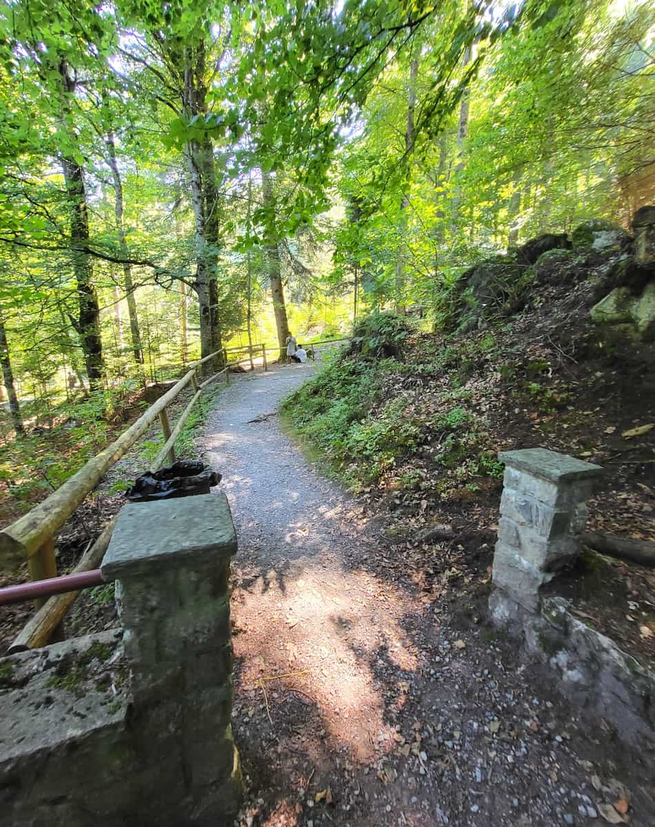 Woodcarving trail. The journey to Hinterburgseeli is as rewarding as the destination itself. The famous “Schnitzlerweg” (woodcarving trail) that leads to the lake features over 100 unique wooden sculptures carved from trees damaged during the severe storms. As I walked the path, I encountered everything from playful dwarves and jumping fish to a boy “peeing” in the forest that made me laugh out loud. These artworks were created by students and masters from Brienz’s renowned woodcarving school – the only one of its kind in Switzerland. The trail is relatively flat, making it perfect for families and casual hikers alike.