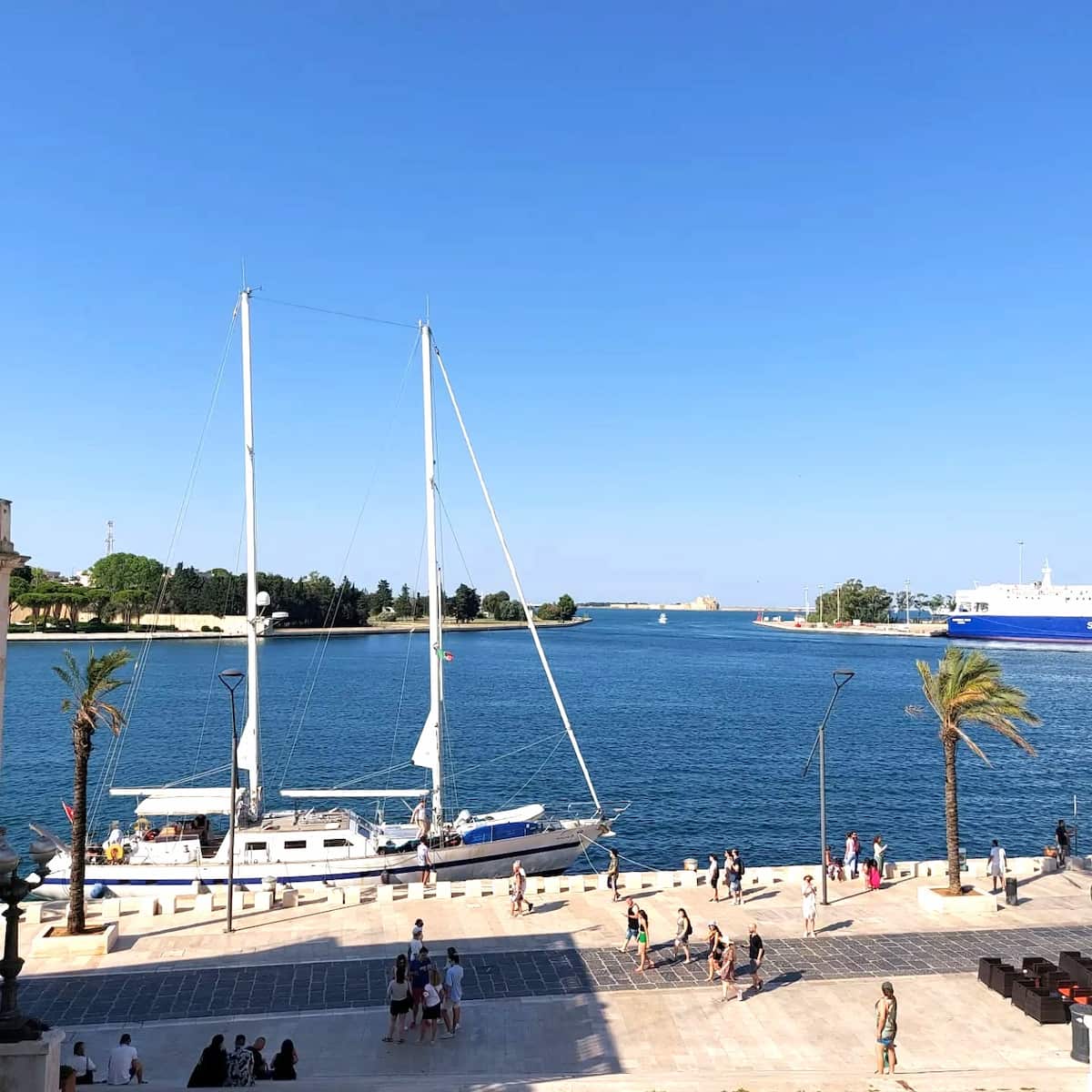 Seaside elegance. Strolling along Lungomare Regina Margherita, I fell in love with this palm-lined promenade stretching along Brindisi’s waterfront. The gentle Mediterranean breeze carried the scent of saltwater as fishing boats bobbed in the harbor.