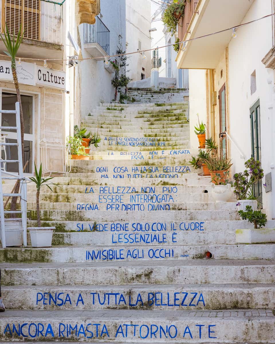 Circular beauty. Named among “Italy’s Most Beautiful Villages,” Locorotondo charmed me with its perfectly circular historic center and distinctive ‘cummerse’ – the area’s typical rectangular houses with sloping roofs. The name itself means “round place,” reflecting the town’s unique layout.