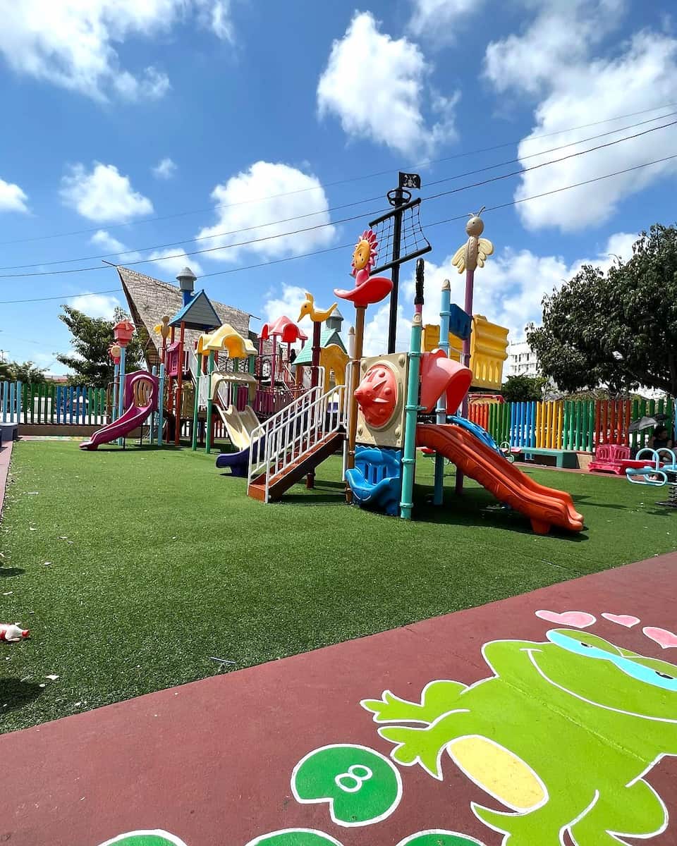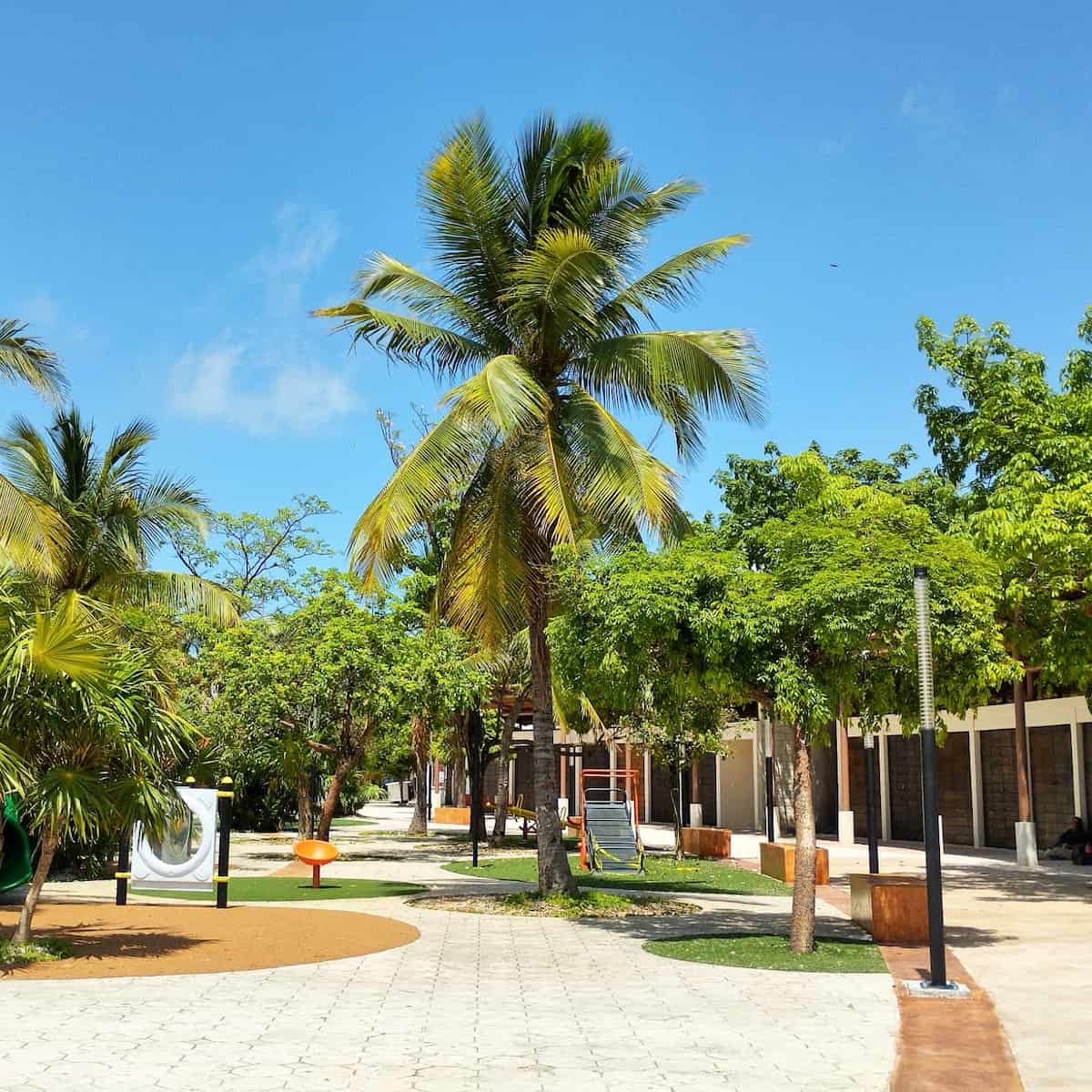 Adventures in Local Culture:Ā Palapas Park, or Parque de las Palapas, is the beating heart ofĀ Cancun and a must-see if you want to experience the real city vibe. I arrived just before sunset and the plaza was already buzzingākids playing on the playground, couples strolling hand-in-hand, and families gathering at tables under the shade of palm trees. The park is more plaza than green space, but what it lacks in grass, it makes up for in energy and local flavor. On weekends, the palapa-roofed stage comes alive with live music, dance performances, and community events.