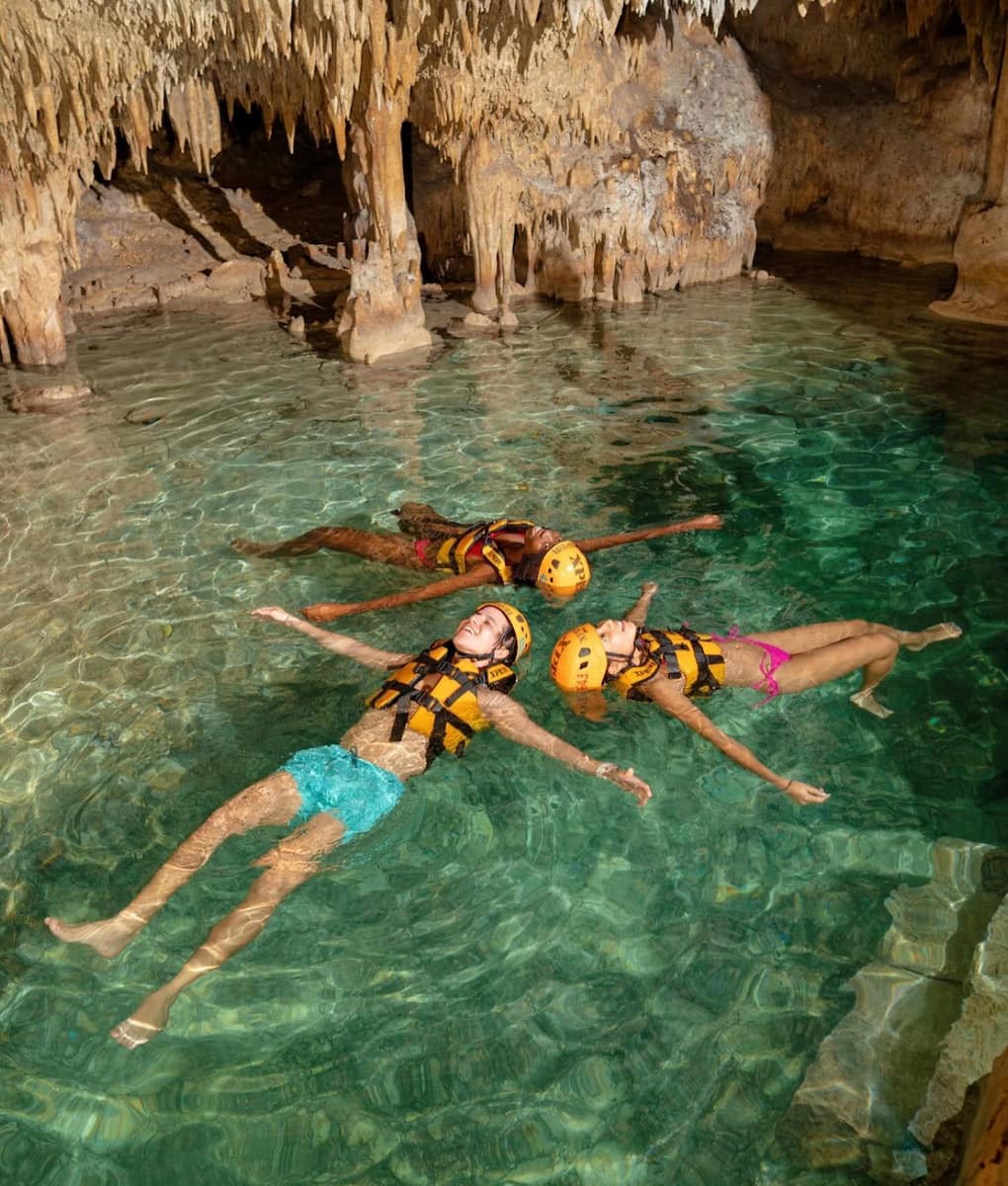Rivers and Caves:Ā Next, I explored the underground rivers, paddling a raft through torch-lit caves filled with stalactites. The water was cool and crystal clear, and the echo of dripping water created a magical atmosphere. I also swam through a river, the limestone walls glowing gold in the light from my helmet lamp. Cancun isnāt complete without swimming in the below-ground waterway!