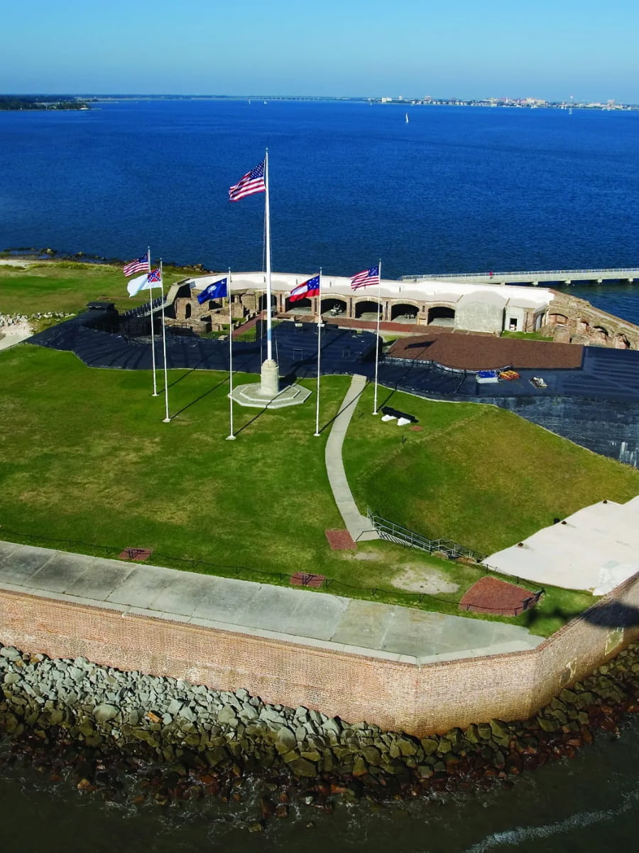 Harbor views. The ferry journey provides unmatched perspectives of Charleston’s historic waterfront, with dolphins often swimming alongside the boat during the 30-minute crossing. The fort’s walls offer 360-degree views of Charleston Harbor, Sullivan’s Island, and the Atlantic Ocean beyond. On clear days, you can see Kiawah Island in the distance while seabirds dive for fish in the harbor’s blue waters.