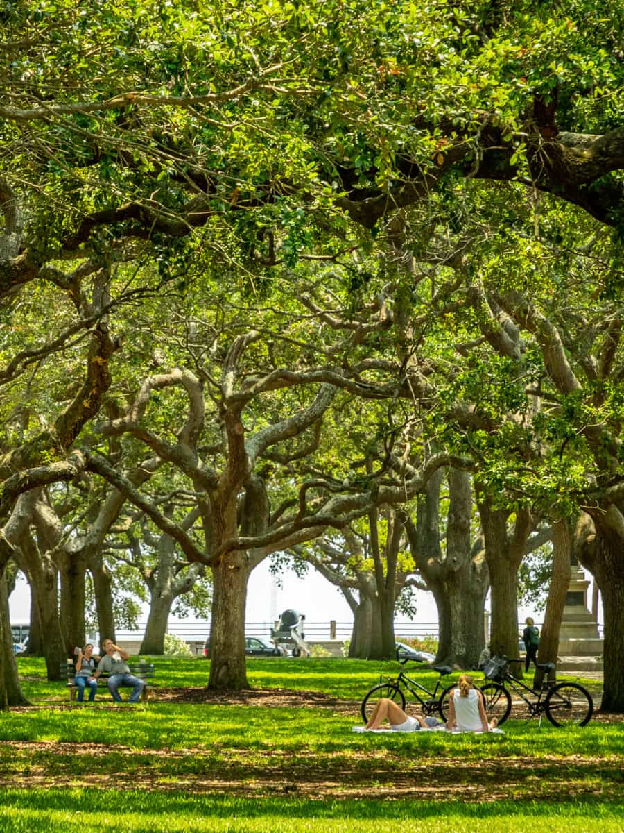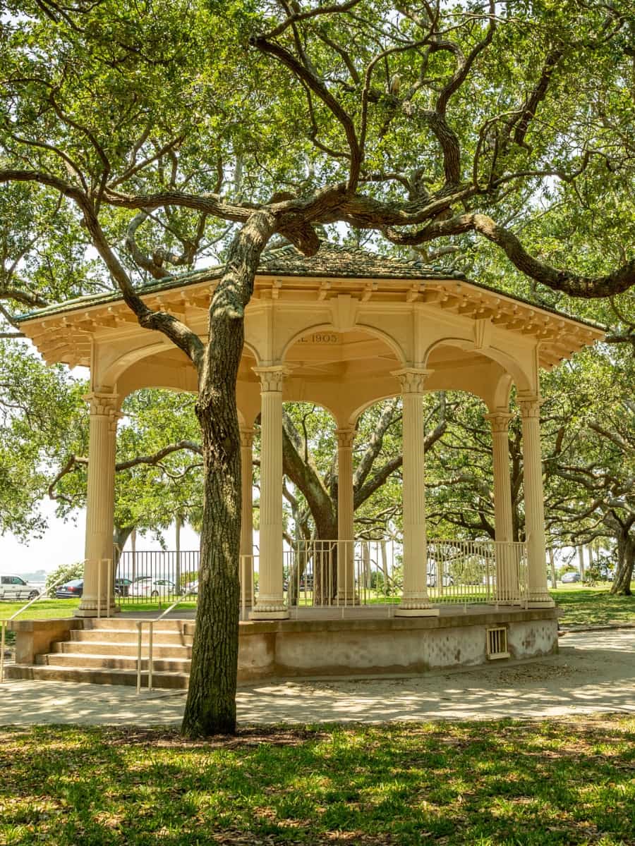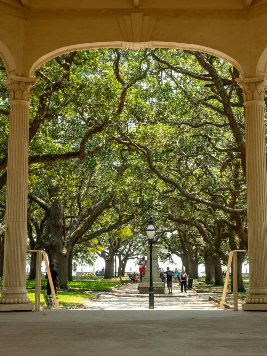 Harbor views. This 5.7-acre waterfront park sits at the tip of Charleston’s peninsula where the Ashley and Cooper Rivers meet to form Charleston Harbor. I’ve spent countless hours on the benches lining the oyster shell pathways, watching sailboats navigate past Fort Sumter and Castle Pinckney in the distance. The park’s strategic location provides unobstructed views of Sullivan’s Island Lighthouse while massive live oaks draped in Spanish moss create natural shade throughout the grounds. Originally called Oyster Point due to sun-bleached shells covering the ground, the area became White Point Garden when the city purchased it for public use in 1837.