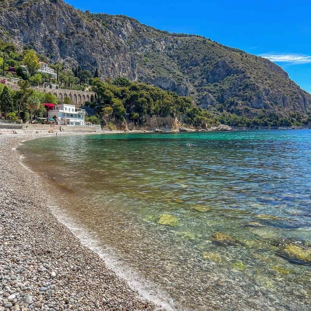 Eze-sur-Mer at the bottom of the hill has a lovely pebble beach. The beach is less crowded than those in Nice or Cannes and offers clear water for swimming.