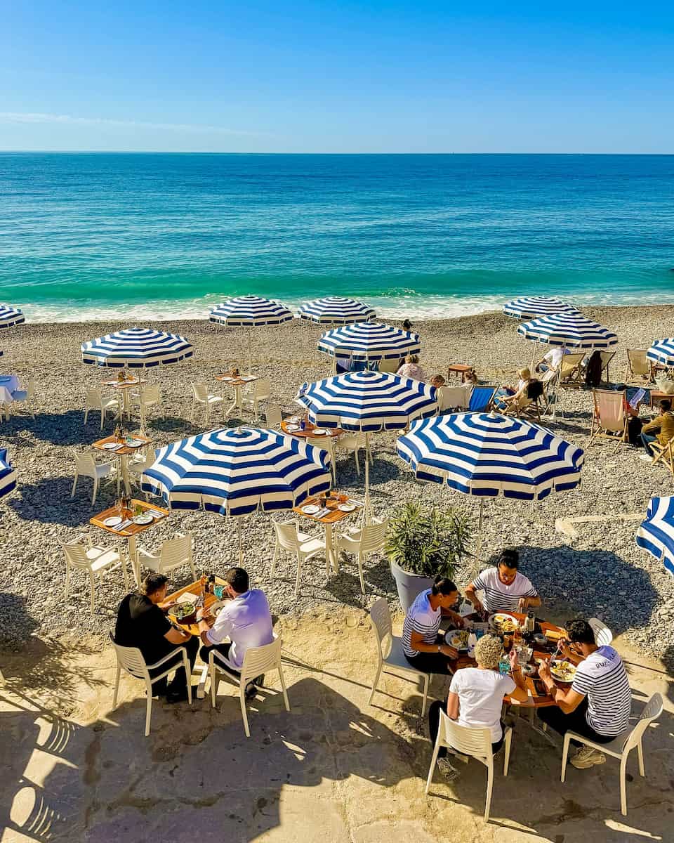 Beach time. If weather permits, pack a swimsuit to enjoy Nice’s famous pebble beaches. Public beaches are free, while private beach clubs offer loungers and service for around €20 per day.