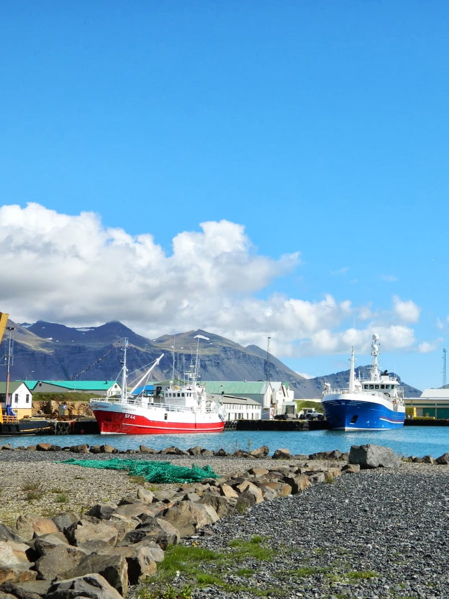 Harbor Atmosphere. The harbor in Höfn is the heart of this fishing village. Walking along the waterfront, I watched colorful boats, felt the salty Atlantic breeze, and enjoyed open views of Vatnajökull glacier and the mountains. The path is flat and easy, making it perfect for a relaxed stroll at any time of day.