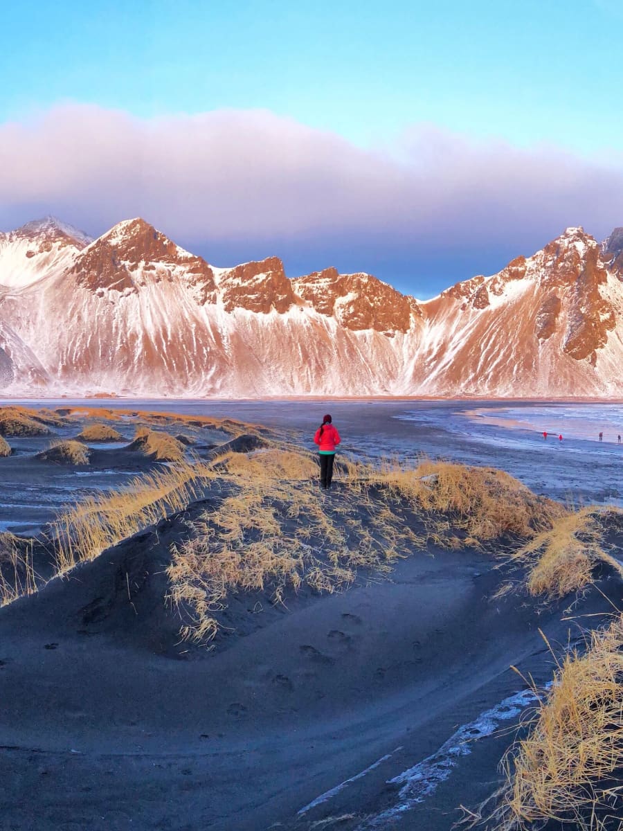 Dramatic Views. The black sand dunes and sharp peaks of Vestrahorn at Stokksnes made me feel like I was in another world. I paid the entrance fee at the Viking Café and followed marked trails for the best views.