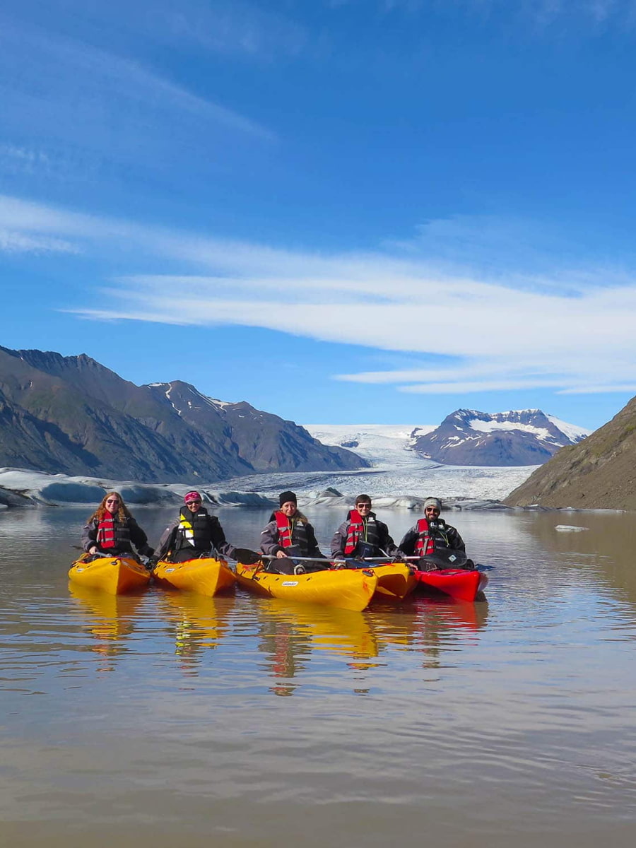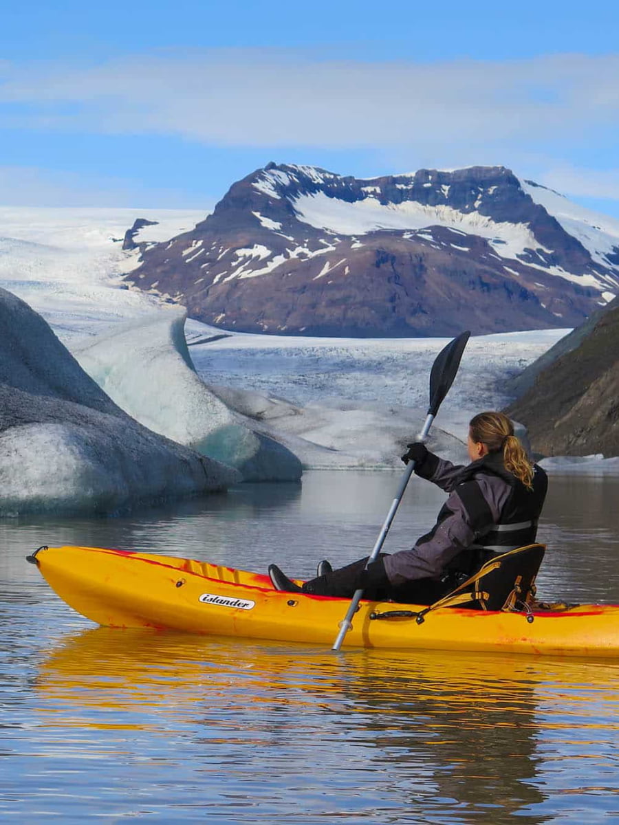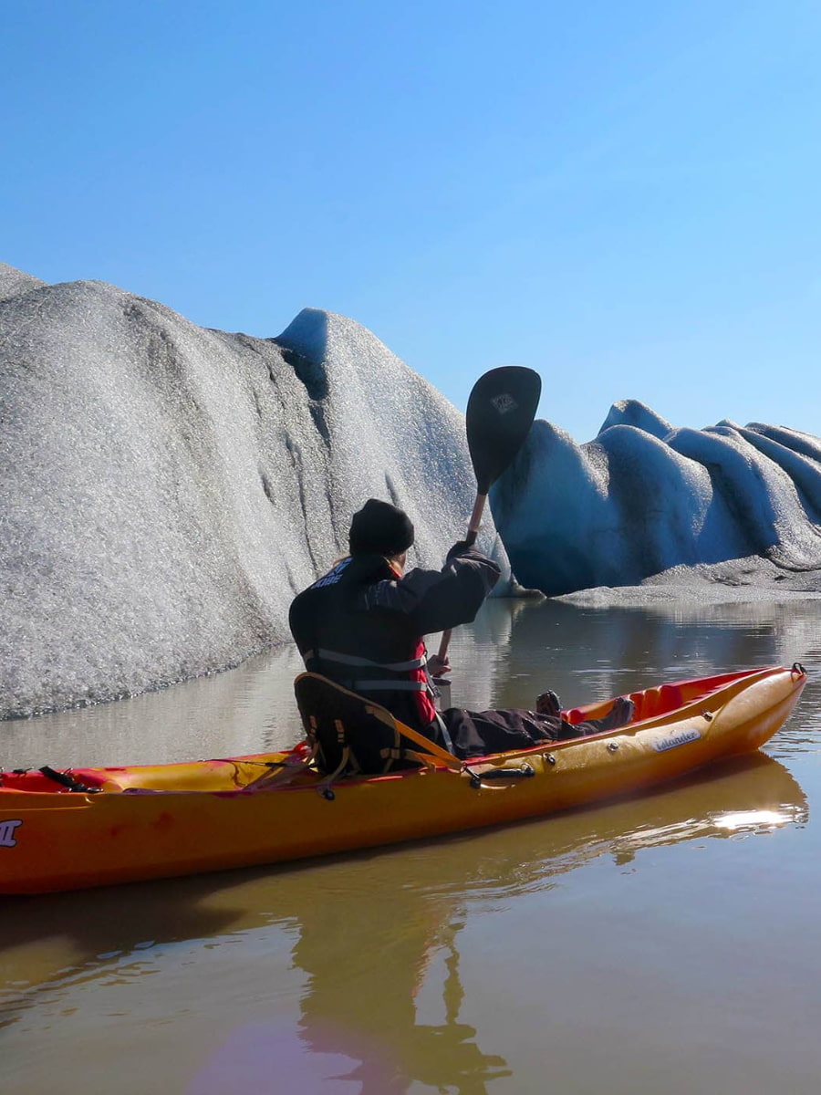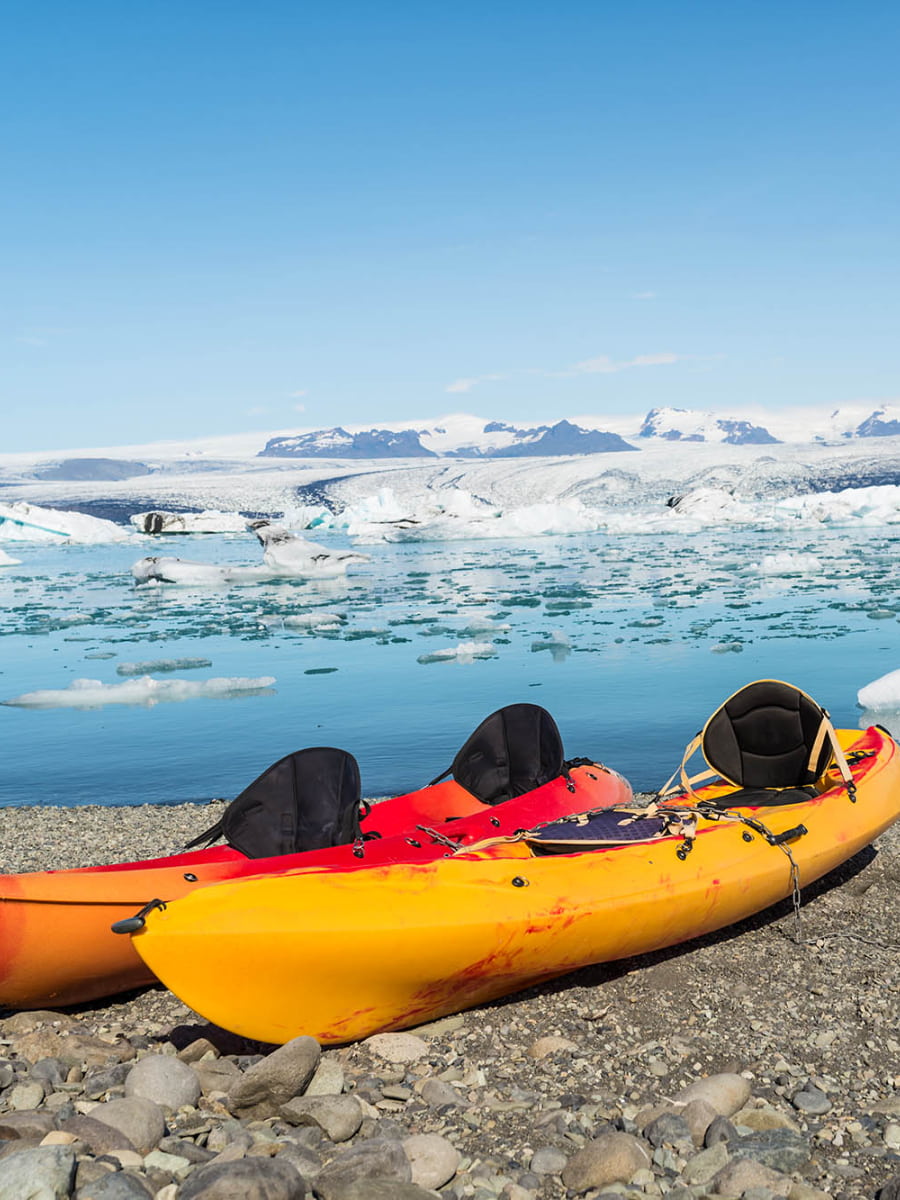 - Glacier Lagoon Kayaking – Experience the magical Jökulsárlón Glacier Lagoon up close on this guided kayaking adventure, where you’ll paddle among floating icebergs in a safe and stable kayak while learning about the lagoon’s formation and the surrounding glacier.