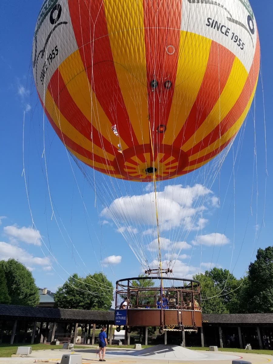Modern. Beyond the past areas, Connor Prairie offers contemporary fun. I took a breathtaking ride in the 1859 Balloon Voyage, soaring 370 feet above the prairie in a tethered helium balloon. The four-story Treetop Outpost playground was filled with families enjoying nature-inspired experiences.