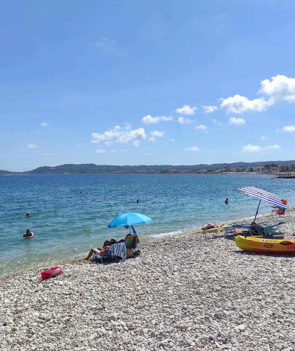 Beach Experience. The beach is small, about 160 meters long, with pebbles and some sand. Renting a sunbed costs around €28 ($30) for the day. I recommend wearing water shoes for comfort on the stones.