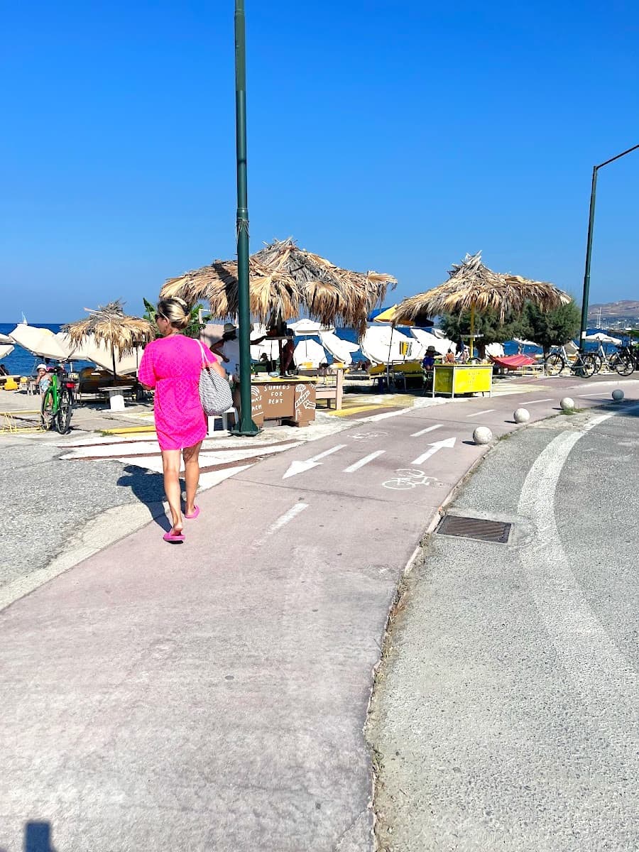Beachfront promenade. The palm-lined promenade behind the beach makes for a lovely walk or cycle. I rented a bike for €5 ($5.50) per hour from Kostas Bikes near the marina and enjoyed exploring the entire stretch, stopping at different beach sections.