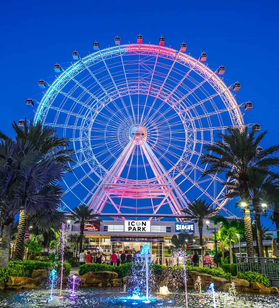 Sky-high views. ICON Park is my top pick for a fun evening out. The Wheel, a 400-foot-tall observation wheel, offers breathtaking views of Orlando-especially at sunset. I always get a bit of a thrill as the capsule rises above the city, and the lights below start to twinkle. The whole complex is lively, with music, street performers, and a constant buzz from the restaurants and bars.