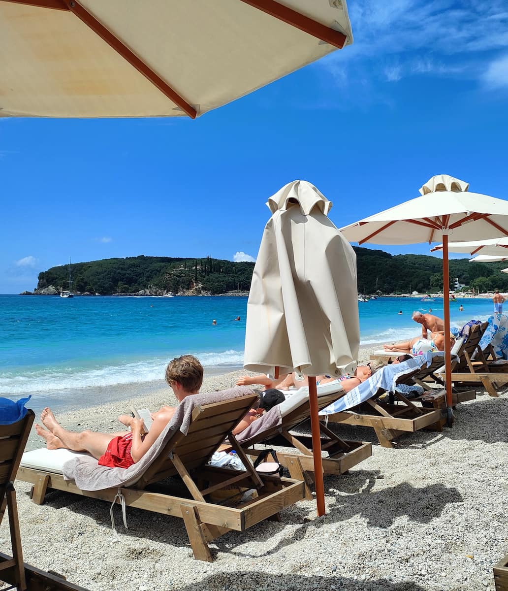 Beach Comfort. What surprised me most about Valtos was how uncrowded it felt even during peak season. The beach’s generous size means you’re never fighting for space. Sunbeds with umbrellas typically cost around €8-10 for the day, though you can always bring your own towel and find a free spot.
