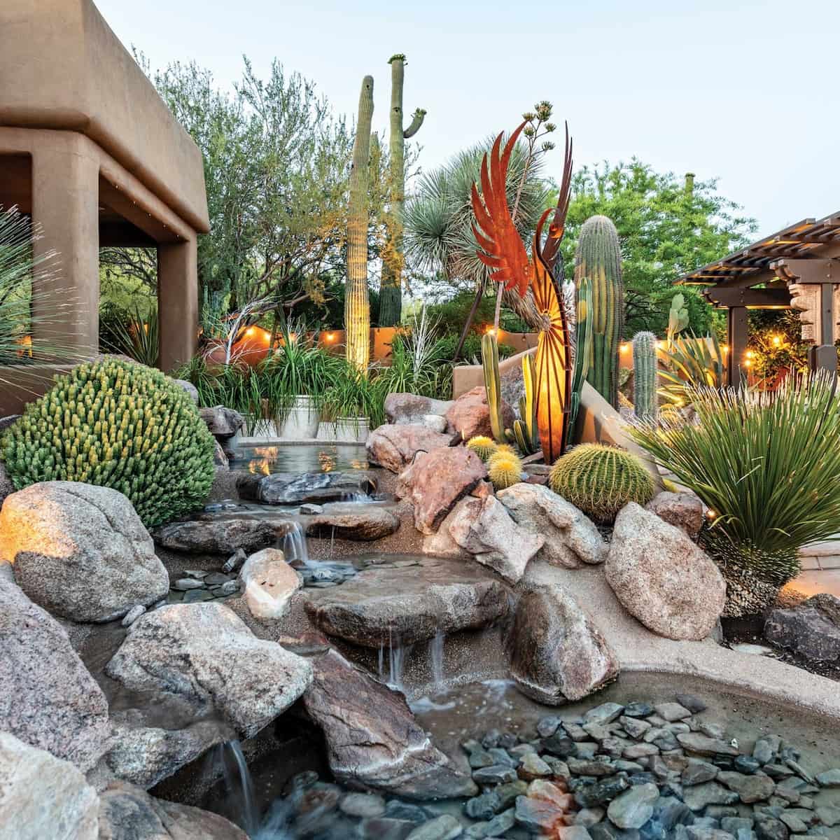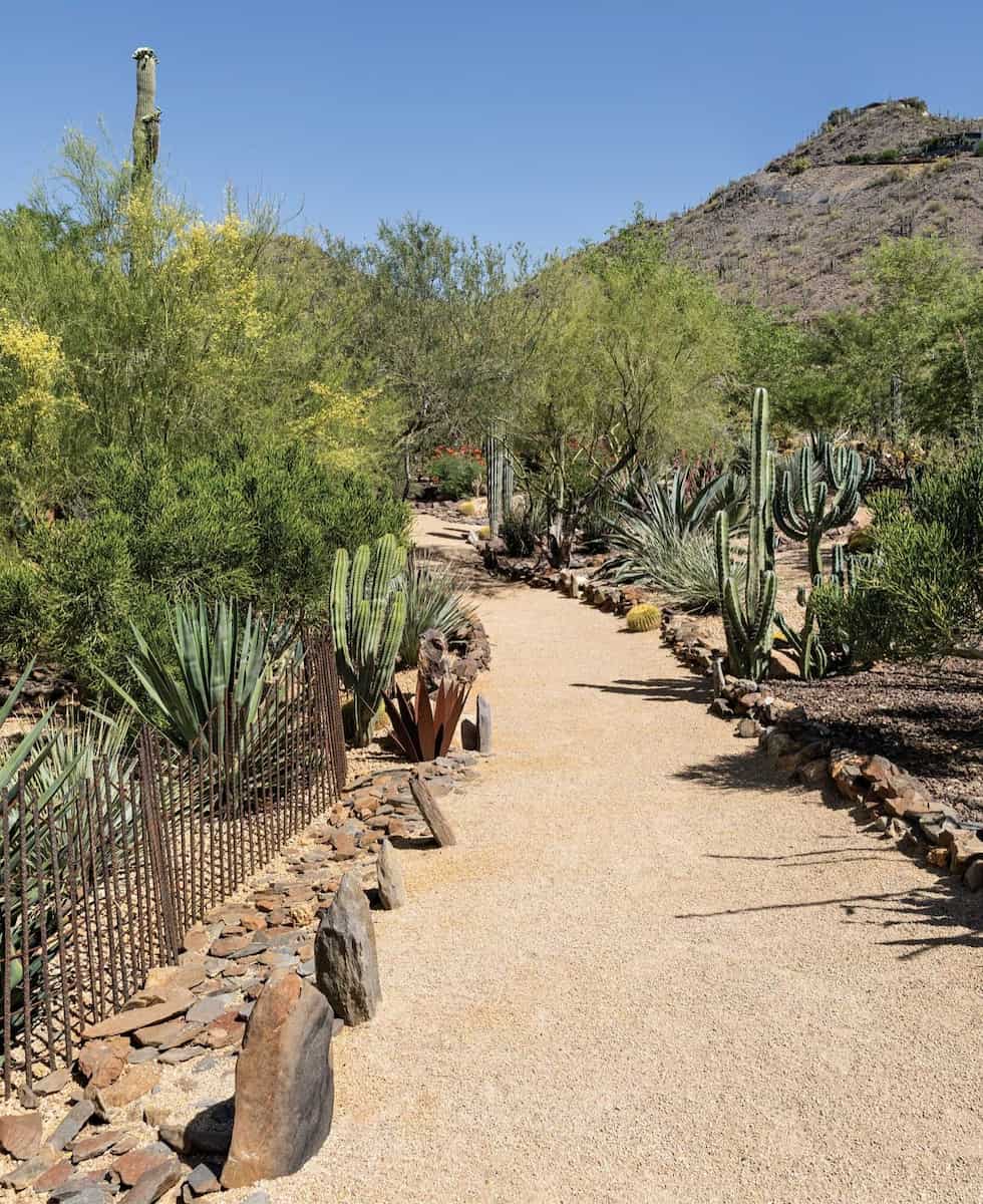 Desert Setting. The property spans 620 acres against the McDowell Mountains, with dramatic views of Paradise Valley. Wright positioned buildings to frame mountain vistas and capture desert breezes. The garden features native plants that Wright incorporated into his design philosophy of organic architecture.