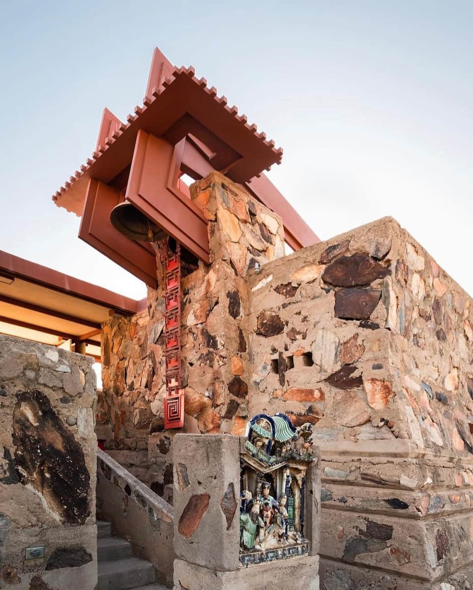 Wright’s Desert Laboratory. Frank Lloyd Wright’s winter home and architecture school sits at 12621 N. Frank Lloyd Wright Blvd in Scottsdale. I was struck by how the buildings emerge organically from the desert landscape. Wright used local materials including desert rocks and sand to create structures that blend with their surroundings.