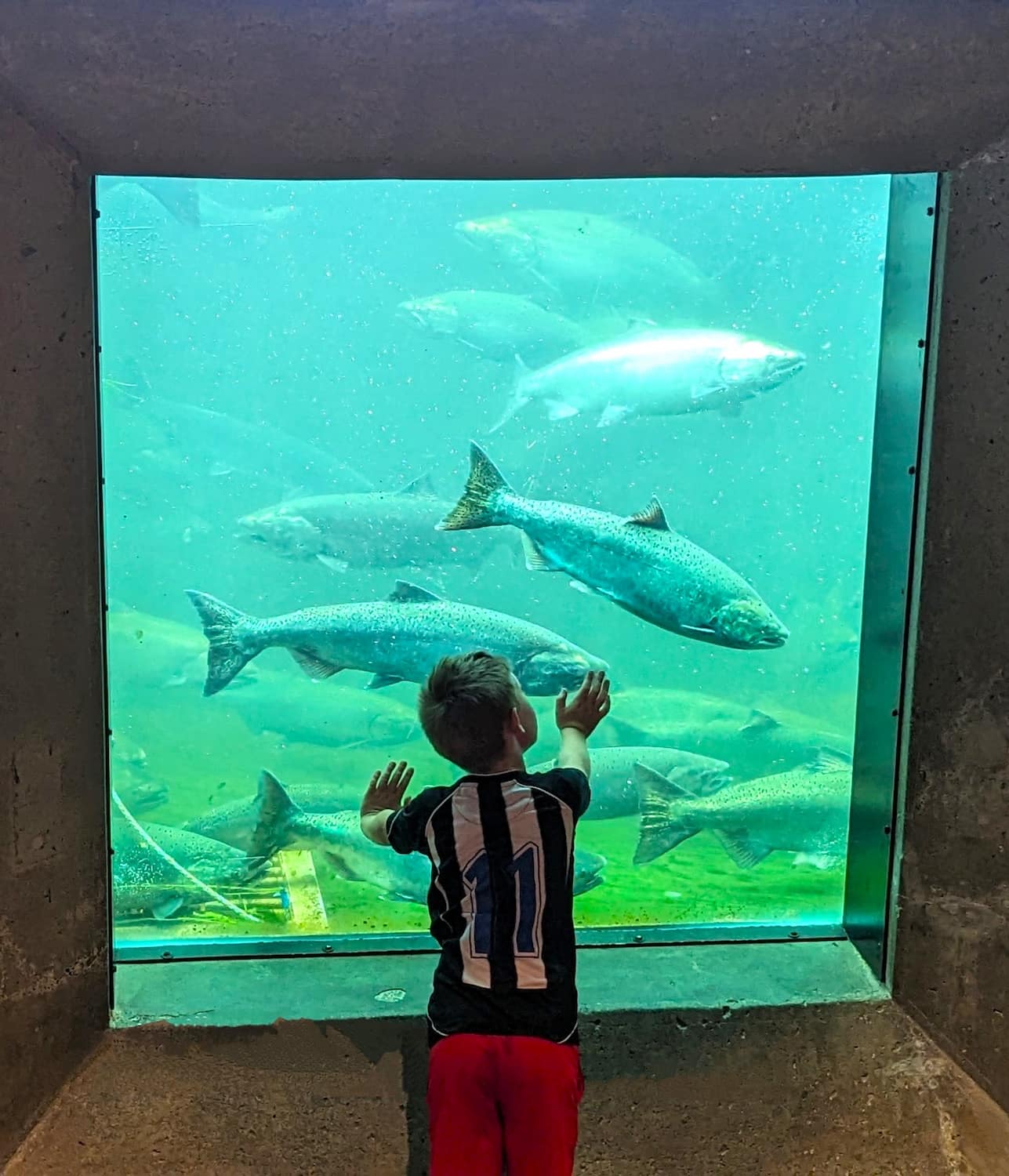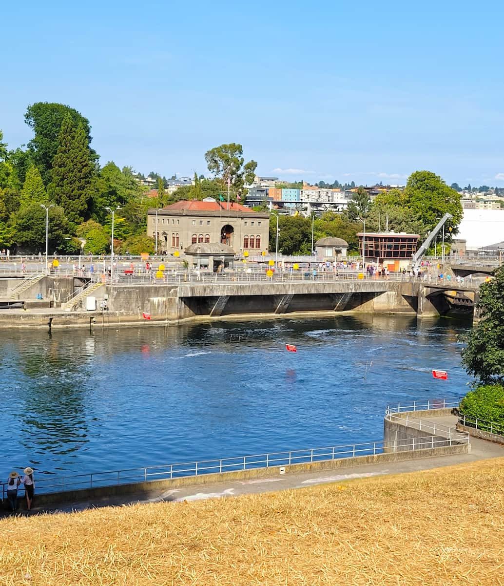 Salmon viewing. The fish ladder allows salmon to bypass the locks during their migration. Through underwater viewing windows, I watched sockeye, chinook, and coho salmon making their incredible journey upstream – a truly unique Seattle experience.