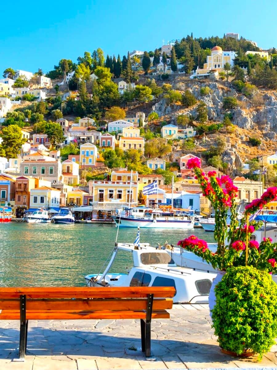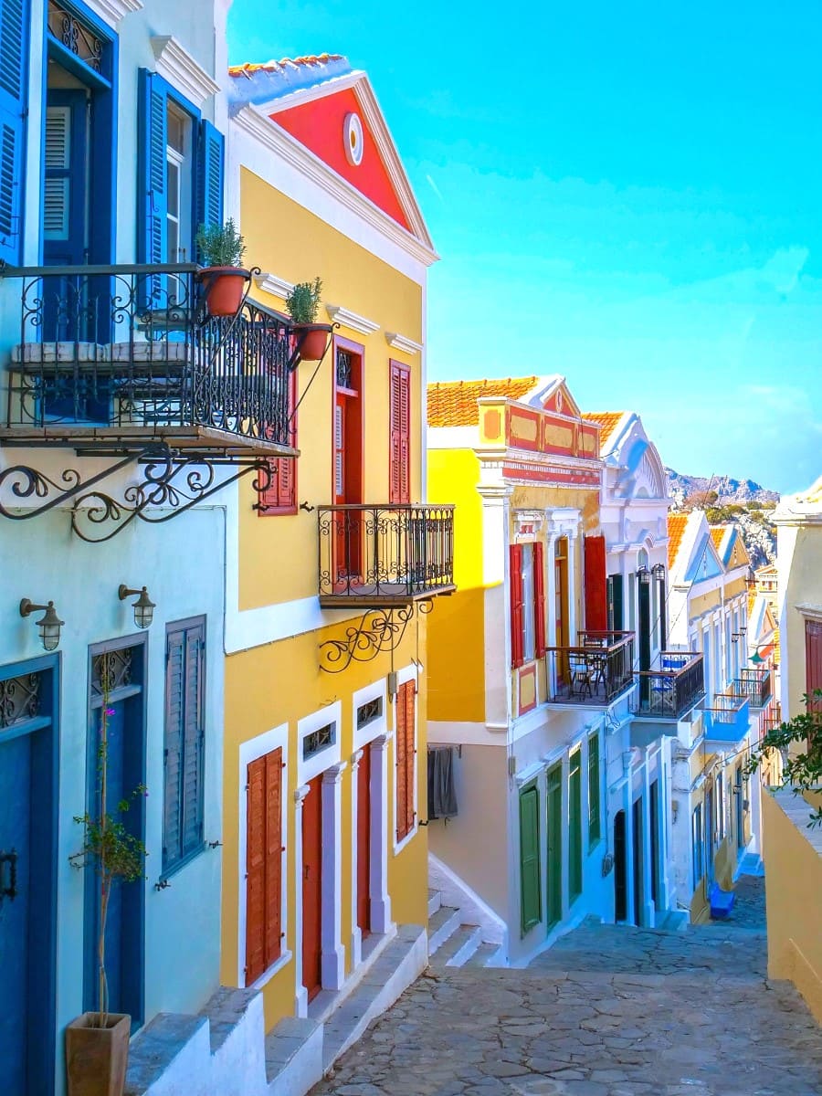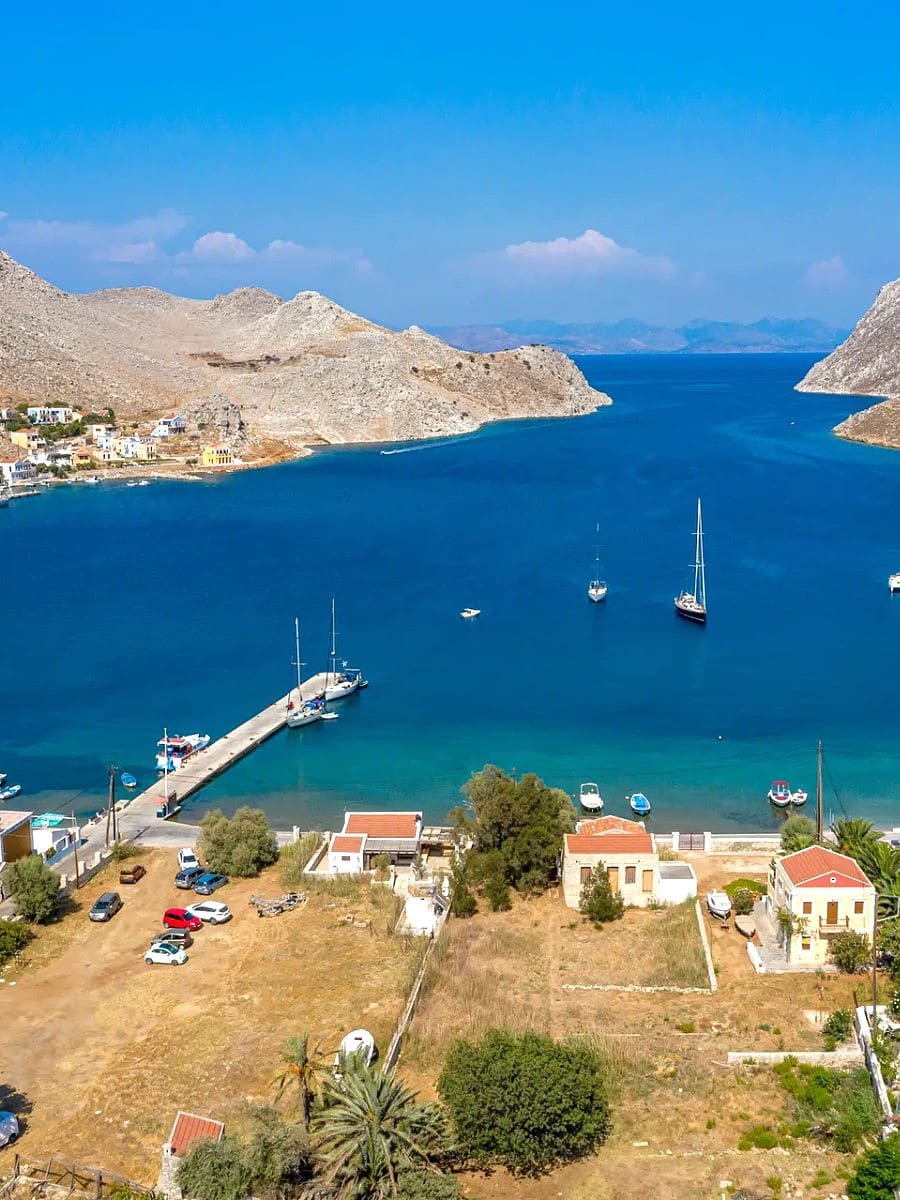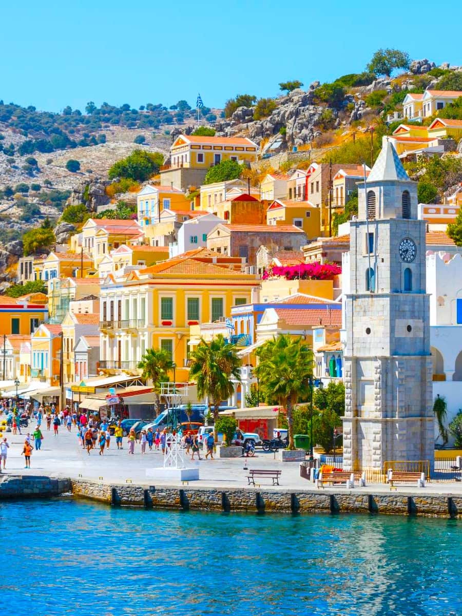 Symi is one of the best places for island hopping in the Dodecanese islands, thanks to its ferry connections with Rhodes and other nearby islands. Its beautiful bay, colorful houses, and clear waters make it a highlight of any Greek island trip.