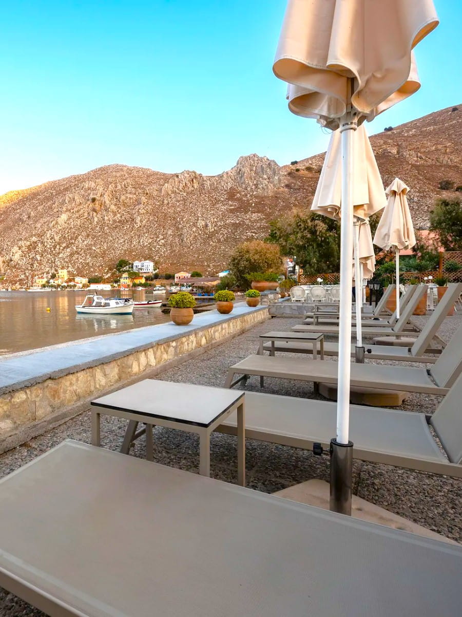 Nos, Pedi, Nimborio, Nanou, and Marathounda are some of the best beaches in Symi, each offering crystal waters and different atmospheres. Many of these beaches have sun umbrellas, tavernas, and are accessible by water taxi or on foot.