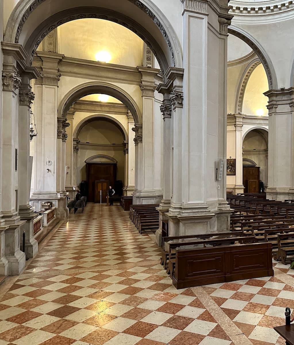 Architectural Marvel. The Cattedrale di San Pietro Apostolo stands as one of Treviso’s most impressive landmarks with its neoclassical façade and grand staircase leading up to six Ionic columns at its entrance. Inside, I was amazed by its serene atmosphere and stunning domes that seem to stretch endlessly upward.