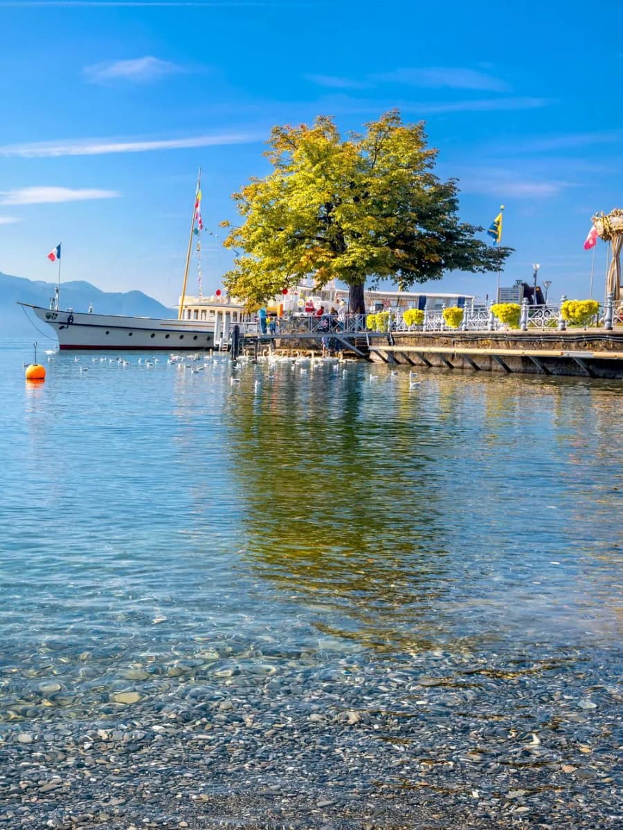 Cruise Options. Lake Geneva boat rides start from Vevey-Marché pier and offer everything from short Riviera cruises to full-day lake tours. I chose a 2-hour cruise along the Lavaux vineyards, passing Chillon Castle and Montreux. The paddle steamers and modern boats both have open decks and a bistro. Onboard, you’ll see panoramic views of the Swiss and French Alps, the Grangettes Nature Reserve, and charming lakeside towns like Le Bouveret and Saint-Gingolph.