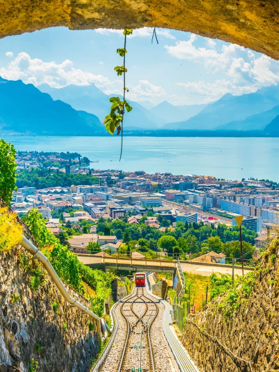 The funicular Vevey-Mont-Pèlerin is one of the best ways to reach the top of Mont Pèlerin for breathtaking views of Lake Geneva and the Swiss Alps. It’s a unique Swiss attraction and a must-do for any visitor to Switzerland.