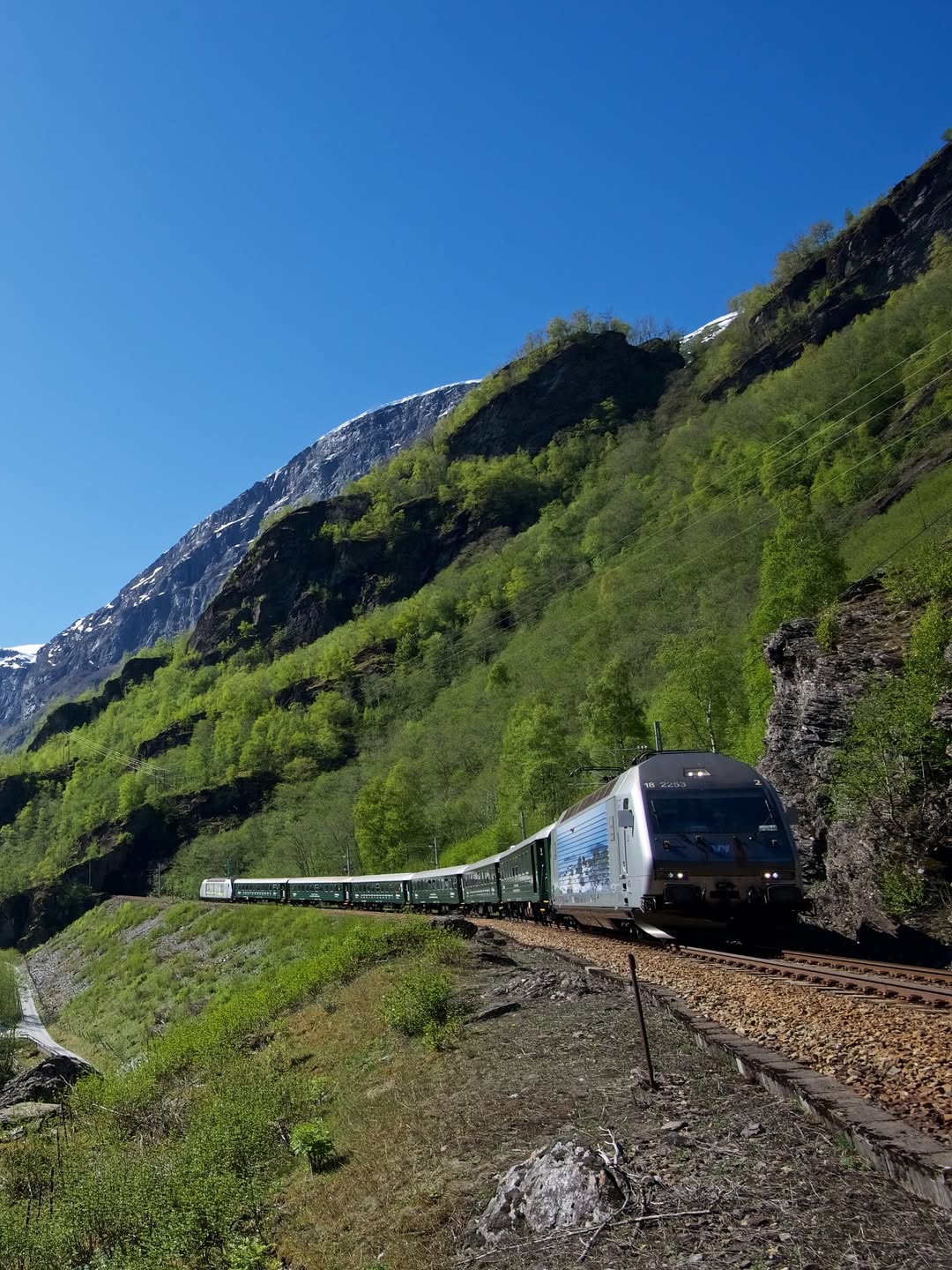 Engineering marvel. The Flåm Railway journey from Myrdal to Flåm ranks among the world’s most beautiful train rides and made for an unforgettable trip from Voss. This 20-kilometer route descends 866 meters through 20 tunnels and past spectacular places. I was constantly switching sides of the train to capture the best views as we wound down the mountain.