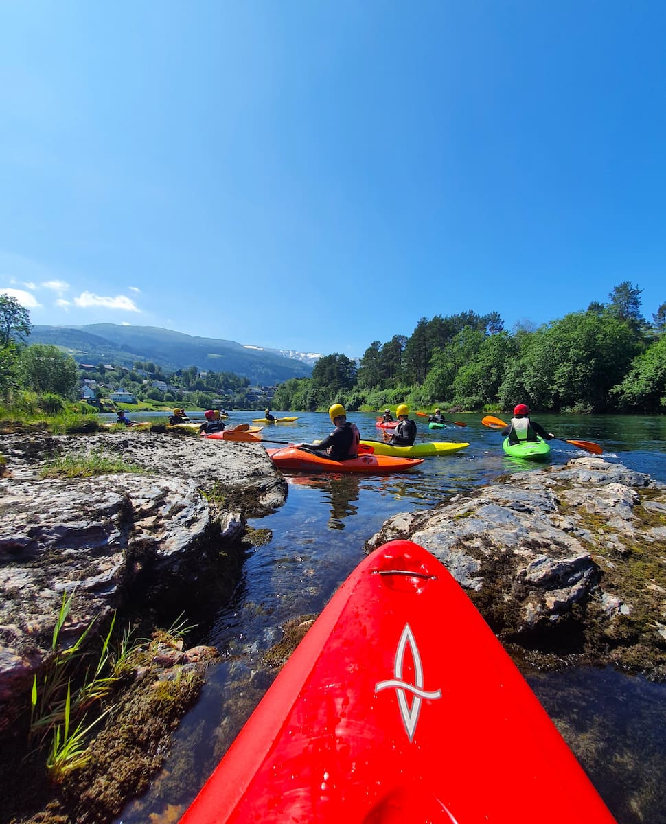 Rental options. I rented a single kayak from Voss Kajak for 400 NOK (~34 EUR) for a half-day. They provided all necessary equipment including life vest, paddle, and a waterproof container for personal items. For beginners, they offer 30-minute introductory lessons for an additional 200 NOK (~17 EUR).