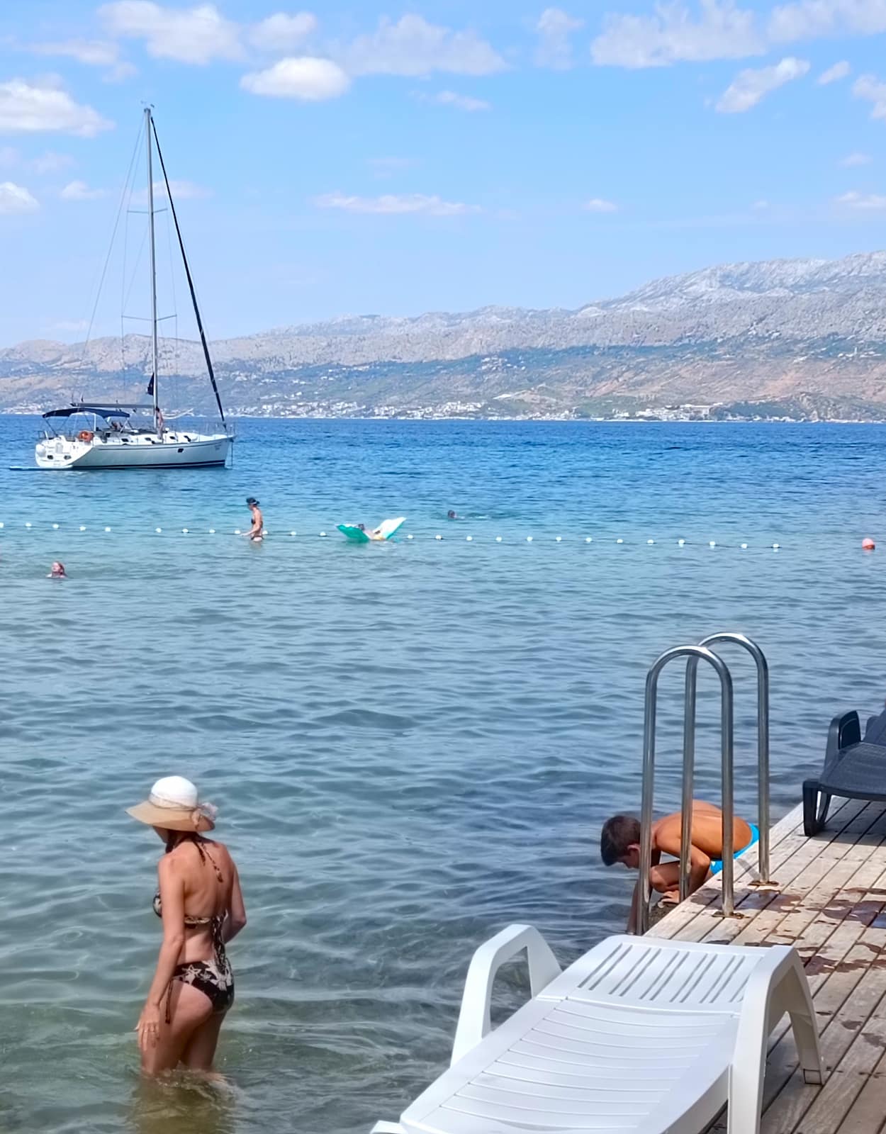 Beach amenities. What really made Lovrecina stand out was the thoughtful setup for families. Unlike some of Brac’s more rugged beaches, here I found clean changing facilities, freshwater showers, and even a small playground set back from the shore. The beach bar serves reasonably priced ice cream (15 kuna/€2 for a scoop) that became our daily ritual. I appreciated that the sunbeds weren’t packed like sardines – we paid 80 kuna (about €10.50) for two loungers and an umbrella, but there was also plenty of free space to set up your own gear. The ancient Roman villa ruins just behind the beach provided an impromptu history lesson and much-needed shade during the midday heat.