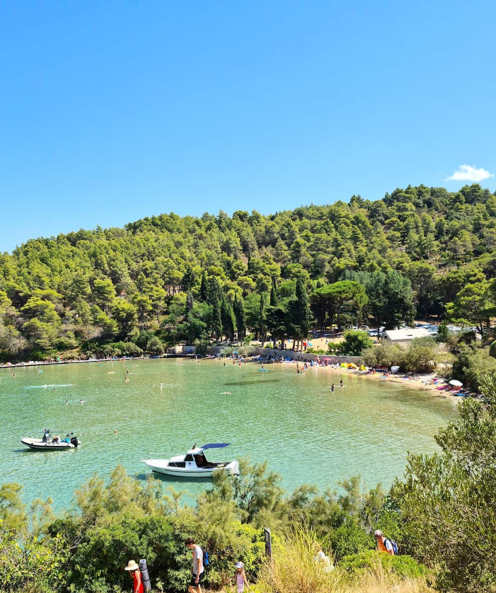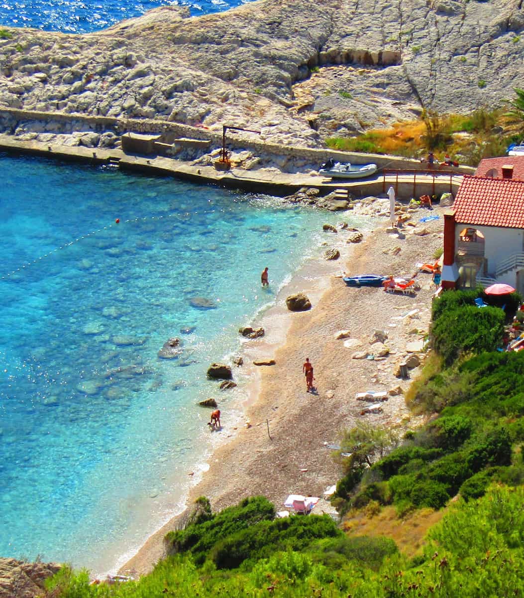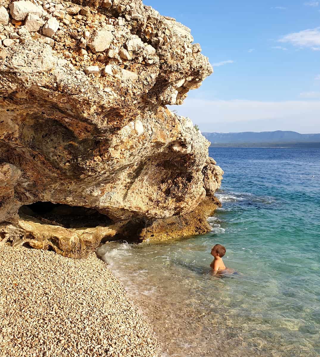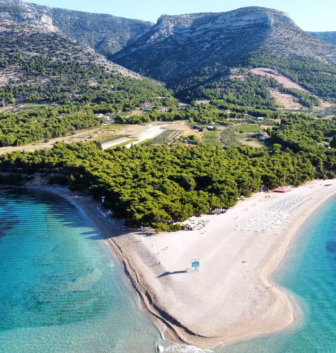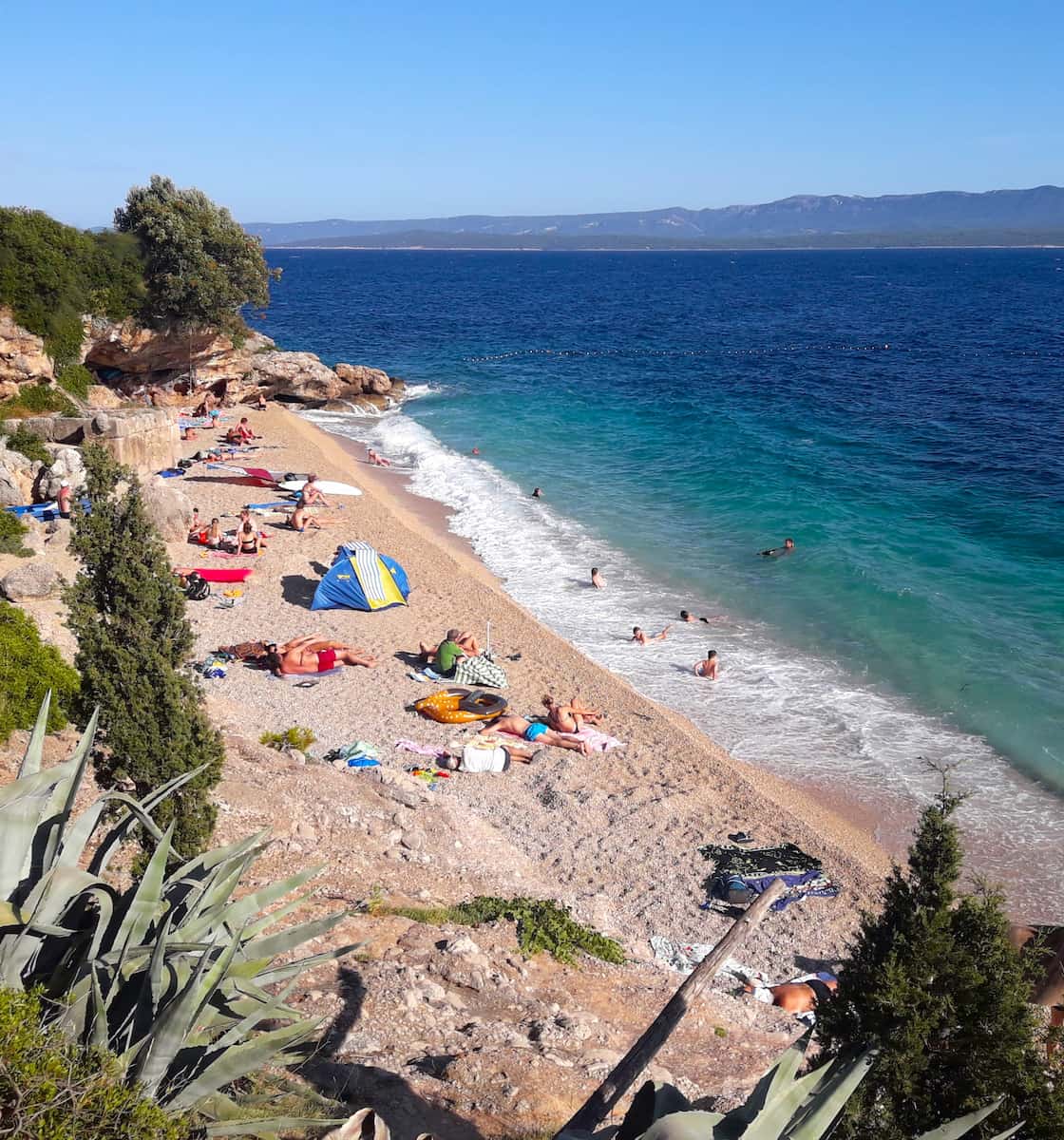 Zlatni Rat Beach in Bol is one of the most beautiful beaches in Croatia. Other great options include Lovrečina Bay, Murvica Beach, and beaches around Sumartin on the eastern side of the island.